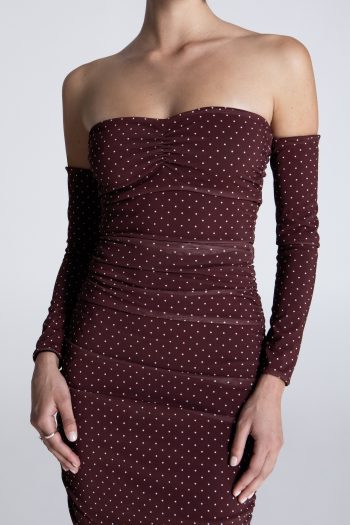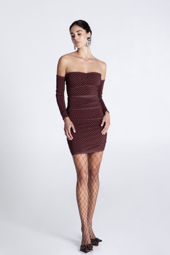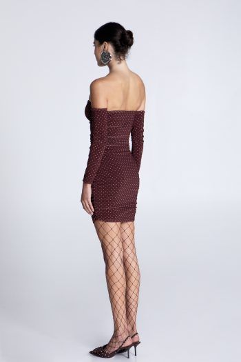 Ένα φόρεμα που κολακεύει τη σιλουέτα και αποπνέει δυναμισμό. Το Mini Mesh Dress της Eveleya, σε βαθύ μπορντό με διακριτικά πουά, αγκαλιάζει το σώμα και αναδεικνύει τους ώμους με το off-shoulder σχέδιό του, δημιουργώντας μια ακαταμάχητη εμφάνιση για βραδινές εξόδους και ξεχωριστές περιστάσεις.