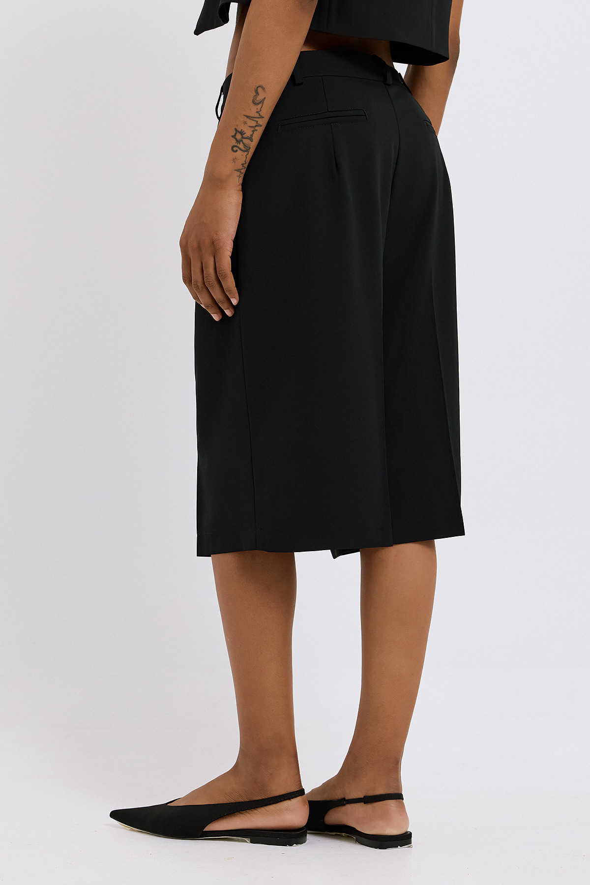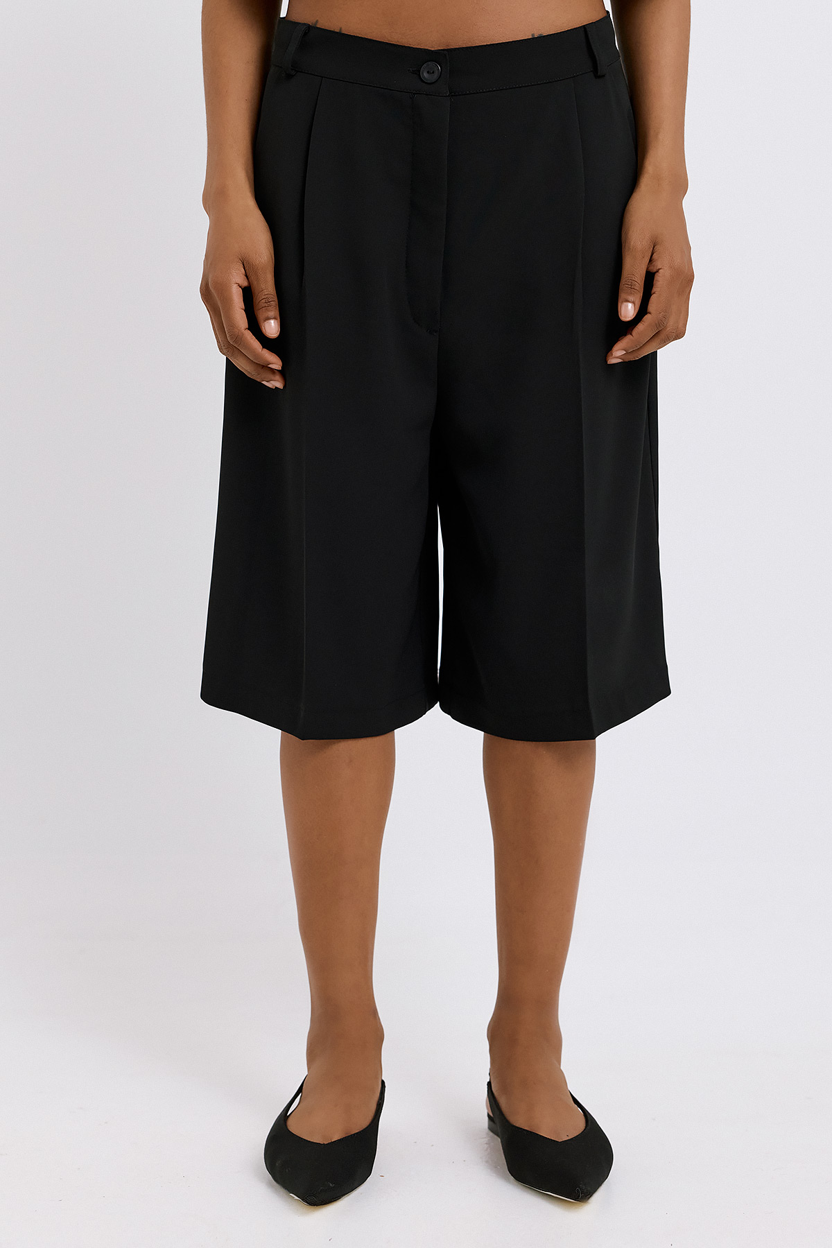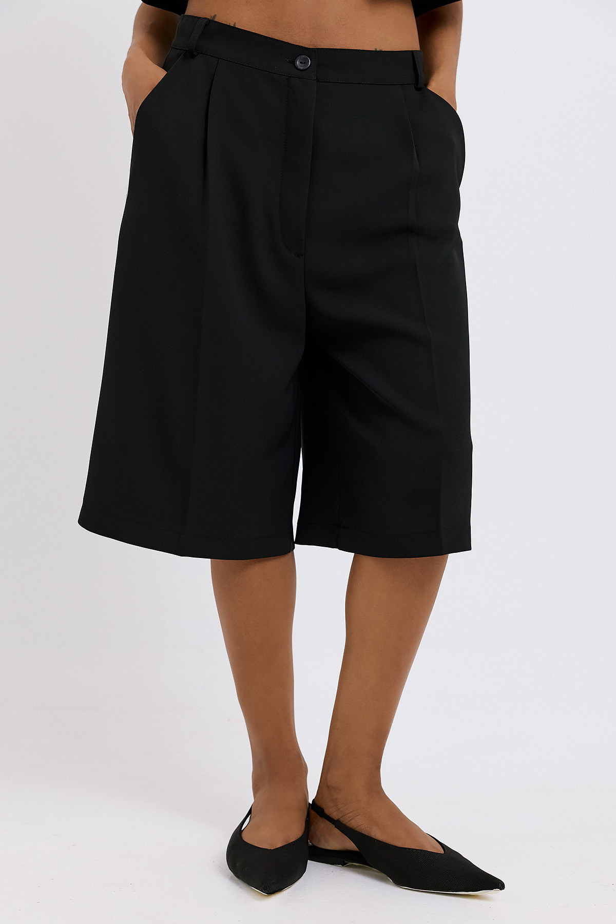 Μια κομψή βερμούδα που ισορροπεί ανάμεσα στην άνεση και την tailored αισθητική. Η γραμμή της είναι χαλαρή αλλά προσεγμένη, με καθαρές πιέτες που χαρίζουν δομή και κίνηση, ενώ το μήκος της την καθιστά ιδανική για all-day εμφανίσεις. Διαθέτει πρακτικές πλαϊνές τσέπες και διακριτικό κούμπωμα, ενισχύοντας τη λειτουργικότητα χωρίς να χάνει τον refined χαρακτήρα της. Το ύφασμα πέφτει απαλά, προσφέροντας άνεση και κομψότητα σε κάθε βήμα. Συνδυάζεται εύκολα με tops ή σακάκια, αποτελώντας βασικό κομμάτι για σύγχρονα, ευέλικτα looks.