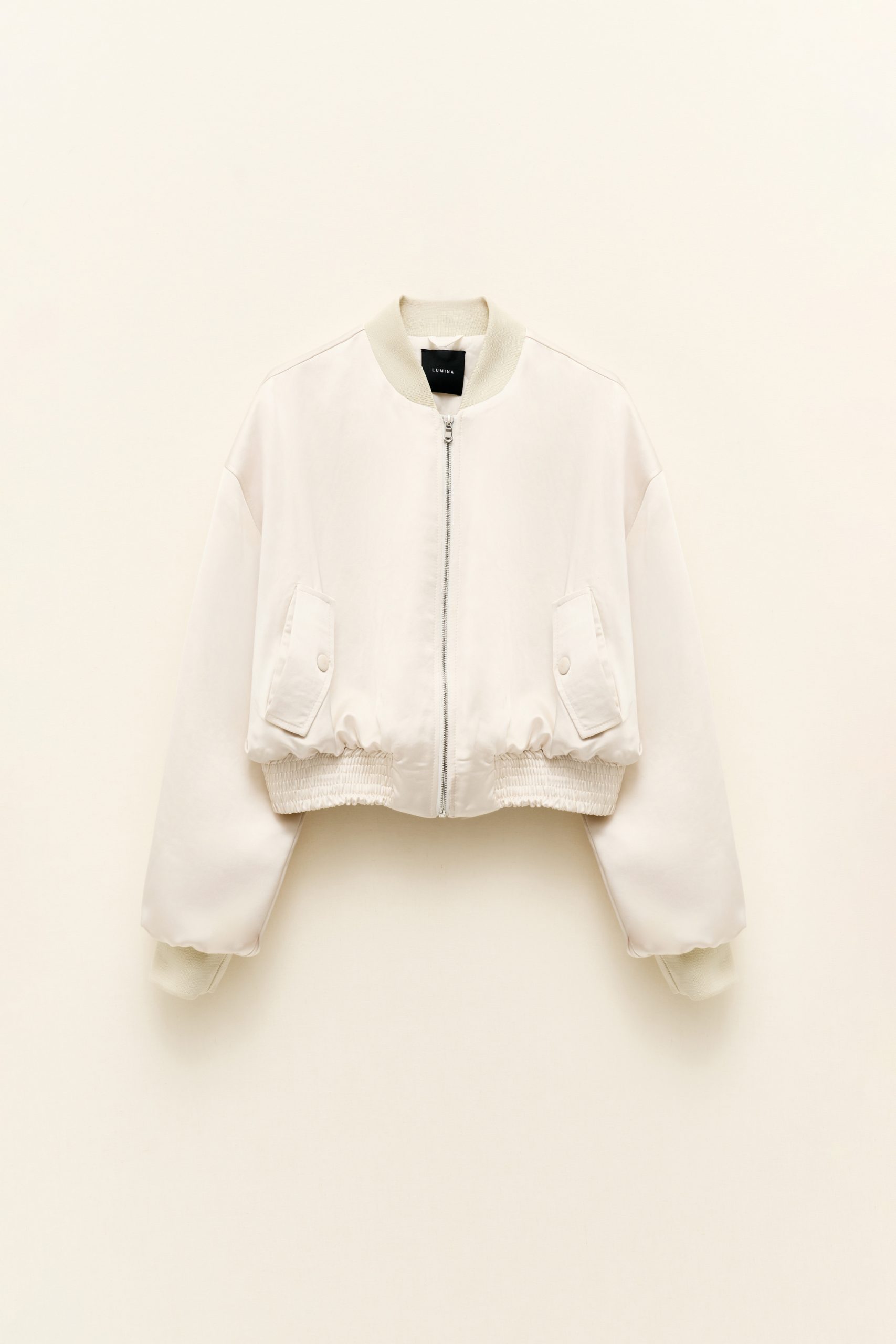 Ένα bomber που επανασυστήνει το iconic σχέδιο μέσα από σύγχρονη, fashion-forward ματιά. Η cropped γραμμή του τονίζει τη μέση, ενώ το ελαστικό τελείωμα δημιουργεί ένα διακριτικό volume που ισορροπεί ιδανικά με τα φουσκωτά μανίκια. Το κλείσιμο με φερμουάρ και οι μπροστινές τσέπες ενισχύουν τον utilitarian χαρακτήρα του, διατηρώντας παράλληλα μια καθαρή, minimal αισθητική. Δυναμικό αλλά ευέλικτο, φοριέται από το πρωί έως το βράδυ και προσθέτει σύγχρονη ένταση σε κάθε σύνολο, είτε συνδυαστεί με tailored κομμάτια είτε με πιο relaxed silhouettes.