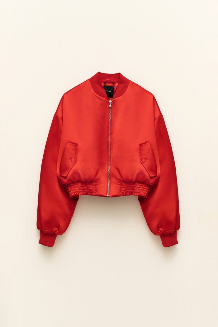 Satin Crop Bomber – Red