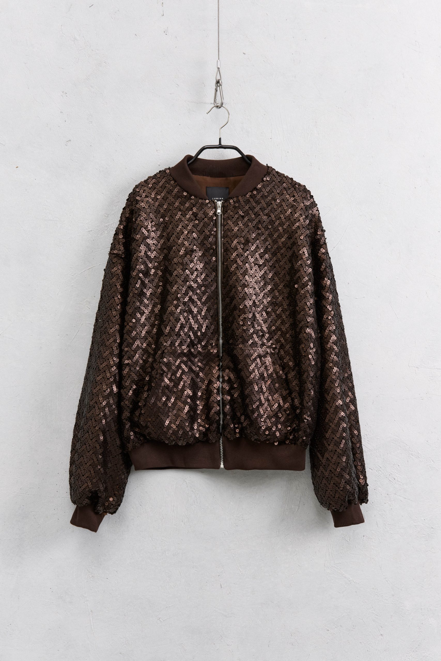 Ένα jacket που μετατρέπει το καθημερινό outerwear σε καθαρή fashion δήλωση. Η κλασική bomber σιλουέτα επανασχεδιάζεται μέσα από μια επιφάνεια γεμάτη υφή και λάμψη, δημιουργώντας ένα αποτέλεσμα που κινείται ανάμεσα στο urban και το βραδινό dressing. Η relaxed γραμμή και τα rib τελειώματα ισορροπούν τη δυναμική του υλικού, προσφέροντας άνεση και ανεπιτήδευτο cool χαρακτήρα. Η επιφάνεια λειτουργεί σχεδόν σαν κόσμημα: αντανακλά το φως διακριτικά, προσθέτοντας βάθος και ένταση χωρίς υπερβολή. Φοριέται ως το κομμάτι-κλειδί ενός minimal συνόλου ή ως contrast σε πιο θηλυκές γραμμές. Ένα jacket που δεν ακολουθεί απλώς τις τάσεις, αλλά τις επαναπροσδιορίζει — σύγχρονο, τολμηρό και απόλυτα editorial.