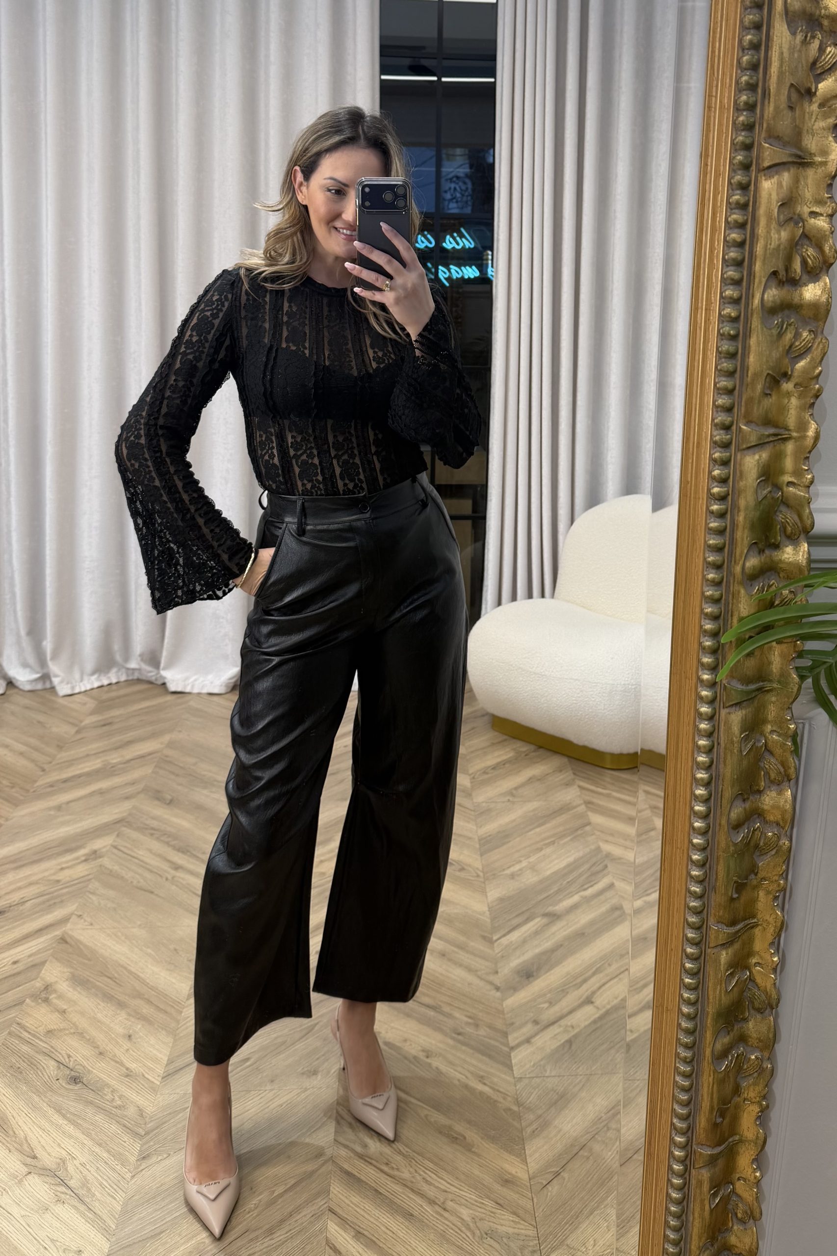 Ένα κομμάτι που ισορροπεί ανάμεσα στη ρομαντική διάθεση και τη σύγχρονη θηλυκότητα. Η ανάγλυφη δαντελένια υφή δημιουργεί βάθος και κίνηση, αγκαλιάζοντας το σώμα με ελαφρότητα και διακριτική διαφάνεια. Η καθαρή γραμμή του σχεδίου αφήνει το ύφασμα να πρωταγωνιστήσει, προσφέροντας ένα αποτέλεσμα φίνο αλλά όχι εύθραυστο. Φοριέται εύκολα από το πρωί μέχρι το βράδυ, είτε ως statement κομμάτι είτε σε layering, αποπνέοντας μια ήρεμη κομψότητα που δεν χρειάζεται υπερβολές.