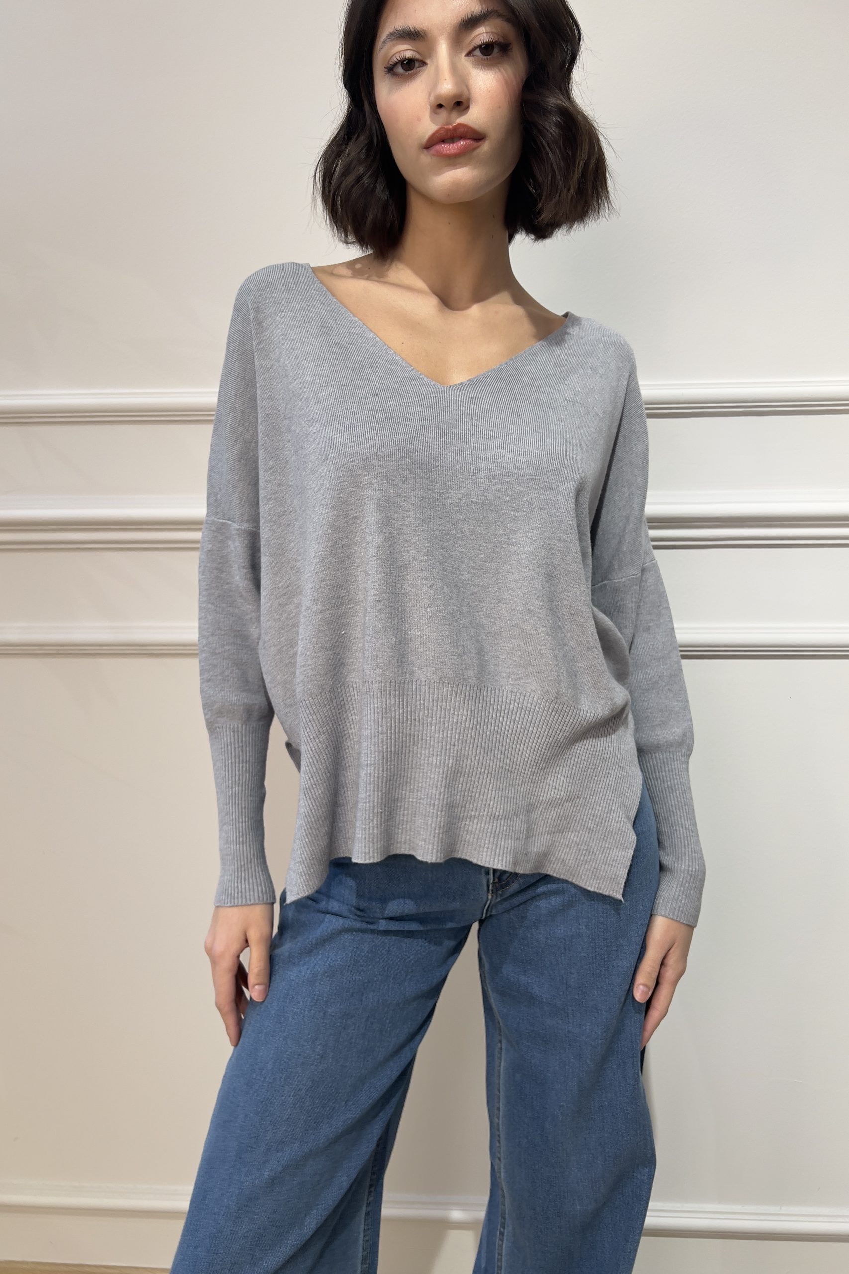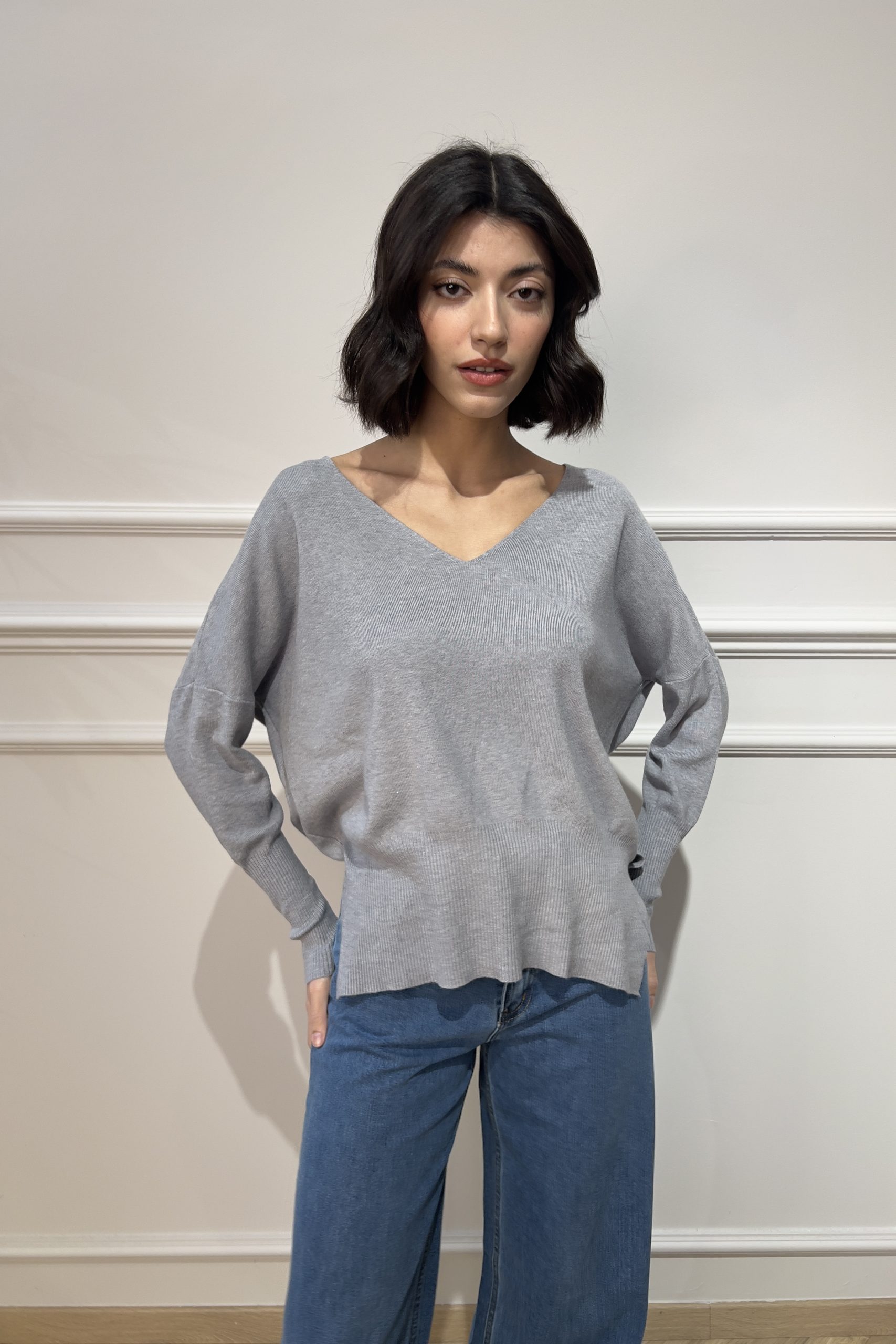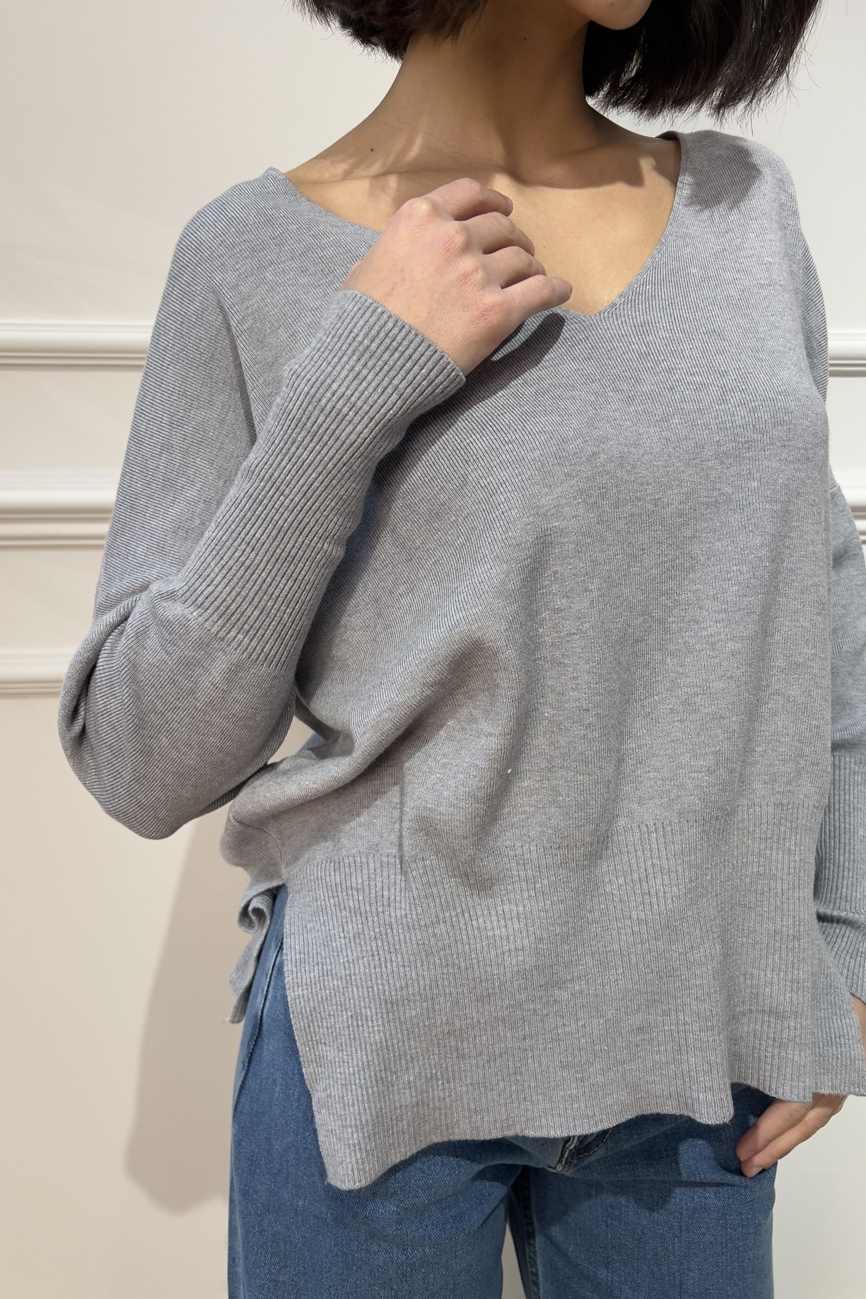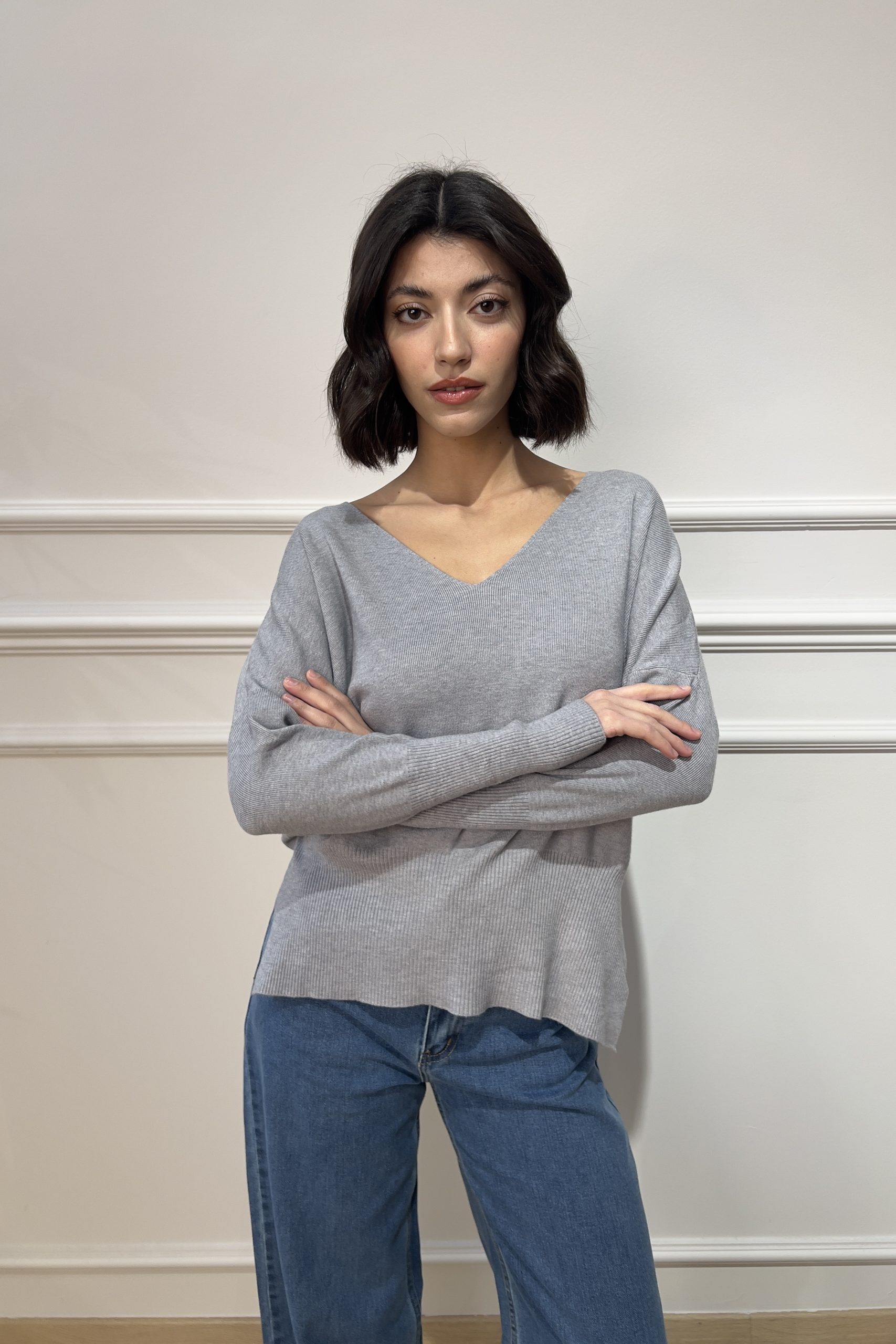 V-Neck Knit – Grey